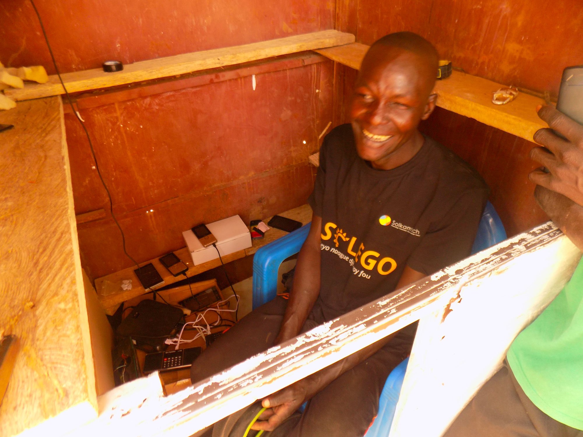 Ngamu Nyouma is a 42 years old man who lives with his 3 wifes in Sekande, a small village at the outskirts of Maroua, northern Cameroon. Electricity lines are running close by but for most of the villagers a connection is too expensive. He used to earn some money with his livestock but this is managed by his oldest son now. To earn additional income he was searching for additional income sources. When he heared about the Solego Haircutting system he knew this would be a good way to generate income. Especially the Pay-as-you-go option made the system extremely attractive to him. For the initial payment of 81,600 CFA (142 $) he was selling some of his life-stock and set up a small shop directly at the road.