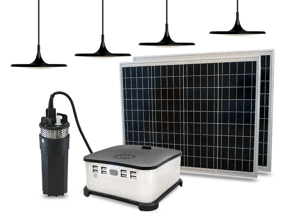 This kits provides allows you to provide water for small poultry farms and field irrigation. Larger custom pumps may also be fitted to the system using DC/DC converters or inverters. Customers benefit from additional lighting, phone charging and more.